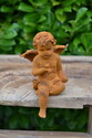 Gietijzeren zittende engel met vogel