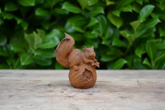 Gietijzeren eekhoorn op noot