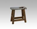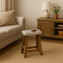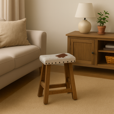 Houten kruk met koeienhuid