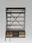 Industriële houten kast met ladder