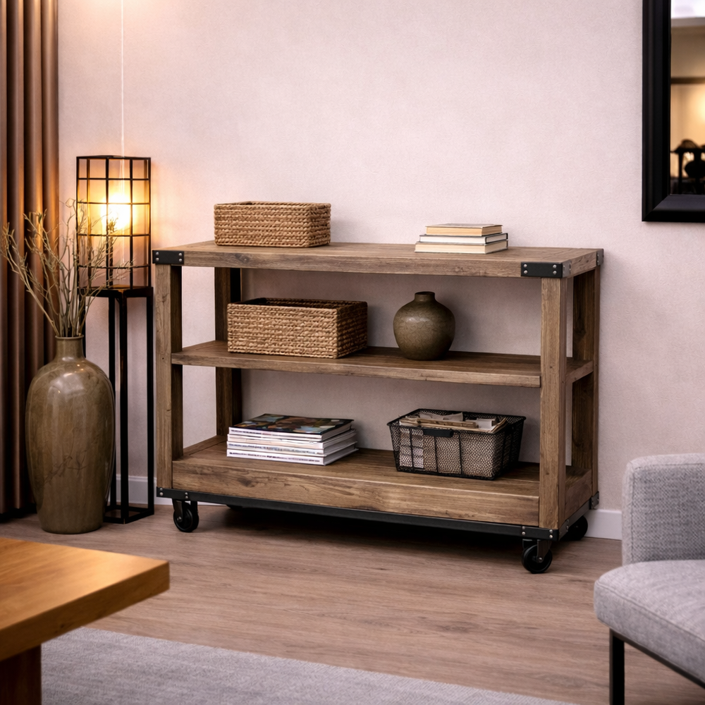 Industriële houten trolley met ijzer